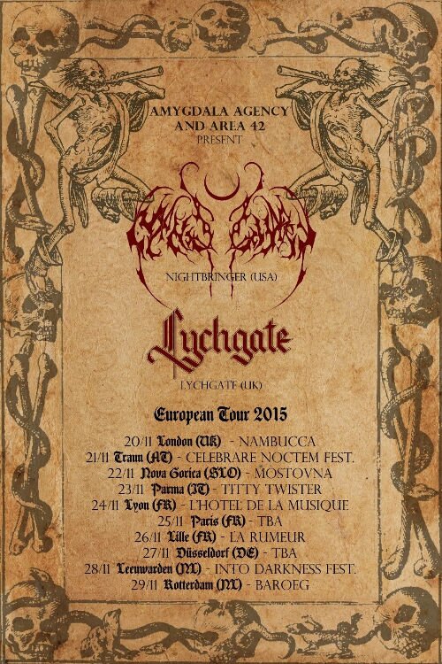 NIGHTBRINGER have already kicked off their European shows. The US underground champions are joined by the dystopical UK black metal outfit LYCHGATE on their dark crusade. NIGHTBRINGER will also perform at the Nidrosian Black Mass IV in Bruxelles. All remaining dates can be viewed below.